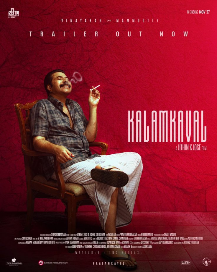 As the title and the credits roll, you will notice that the Director is trying to make a statement. A statement that Kalamkaval is not a typical Mammootty film. The tagline “The Venom beneath” added to the title, along with the quote “The venom beneath can’t be suppressed forever,” set the mood right at the beginning. Within a few minutes, the film’s central plot is established, centred on a psycho serial killer and his escapades.